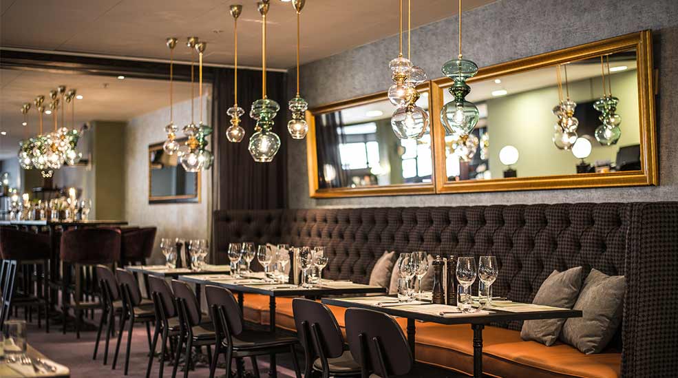 Den fine lounge, den elegante bar og den skønne restaurant Brasseri Absint er perfekt til sammenkomster, morgen, middag og aften.